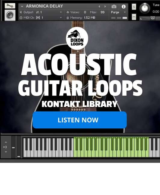 Kontakt Acoustic Guitar Loops by Dixonloops: A premium collection of expressive and realistic acoustic guitar loops, designed for professional music production and fully compatible with Kontakt.