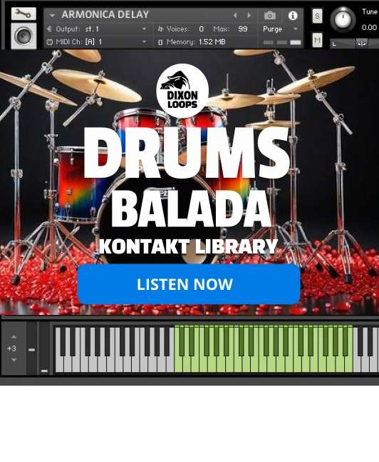 The Kontakt Library Drums Balada captures the intimate sound of soft drum grooves designed for emotional and melodic music. Perfect for romantic ballads, pop ballads, and acoustic arrangements, this library delivers smooth, expressive percussion that enhances any heartfelt production.