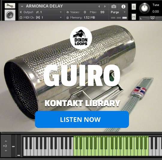 The Guiro by DixonLoops library for Kontakt is a meticulously crafted virtual instrument that captures the authentic sound and nuances of the traditional Latin American güiro.