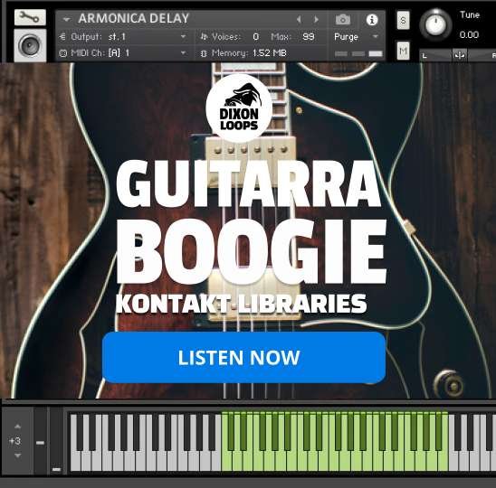 Kontakt Guitarra Boogie is a premium guitar library designed for Native Instruments Kontakt by Dixonloops, capturing the soulful and rhythmic essence of boogie, funk, and jazz guitar styles.