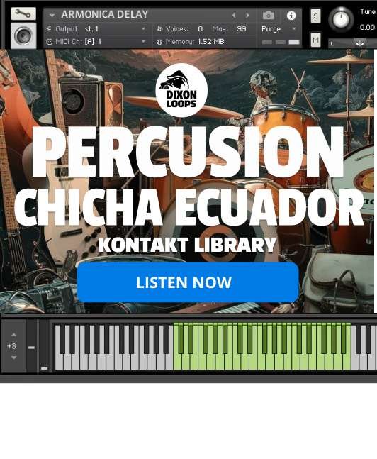 The Percusion Chicha Ecuatoriana Kontakt Library is a comprehensive and immersive collection designed to bring the vibrant sounds of Ecuadorian Chicha music to your productions. This library features an extensive range of traditional percussion instruments that are fundamental to the Chicha genre, characterized by its blend of cumbia, rock, and indigenous influences.
