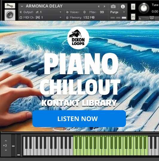 A smooth and relaxing Kontakt piano chillout library featuring warm tones, soft dynamics, and atmospheric textures—perfect for ambient, chillout, and downtempo music.