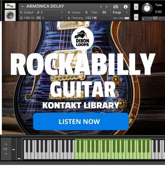 Kontakt Rockabilly Guitar Library by Dixonloops is a high-quality virtual instrument designed to capture the authentic sound of classic rockabilly guitar.